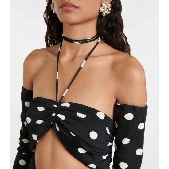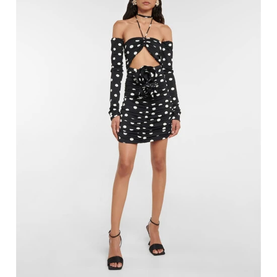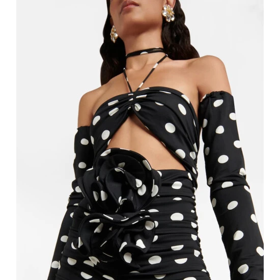 Punctuated with polka-dots and brimming with modern glamour, this Magda Butrym has floral embellishment and cutout detailing.