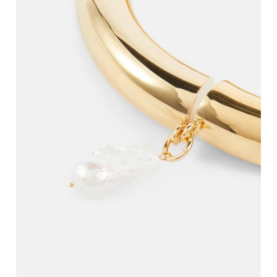 Polish off your Magda Butrym party looks with this sculptural, 24kt gold-plated necklace. The tubular shape rests elegantly around the neck and is complete with a Baroque pearl pendant.