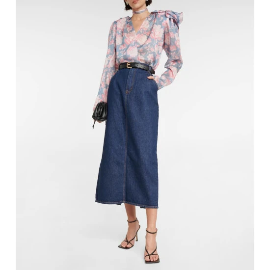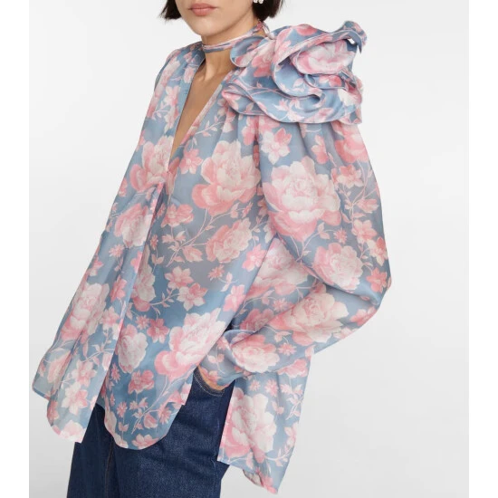 This Magda Butrym shirt is cut from floral-printed silk with self-tie collar detailing that loops through the shoulders for a gathered, ruched effect. Shaped with a stepped hem, it’s adorned with a signature floral appliqué.