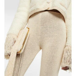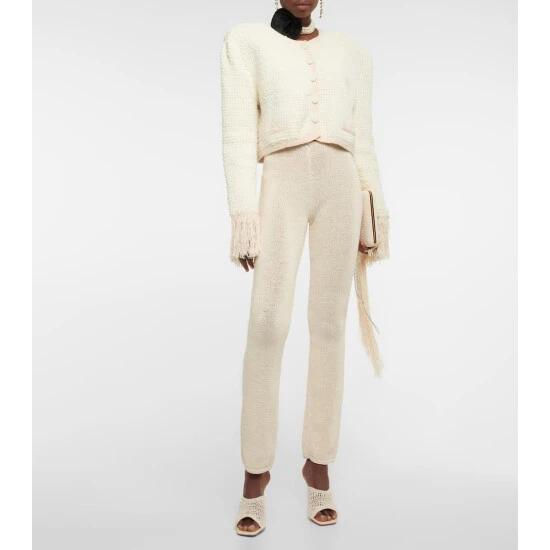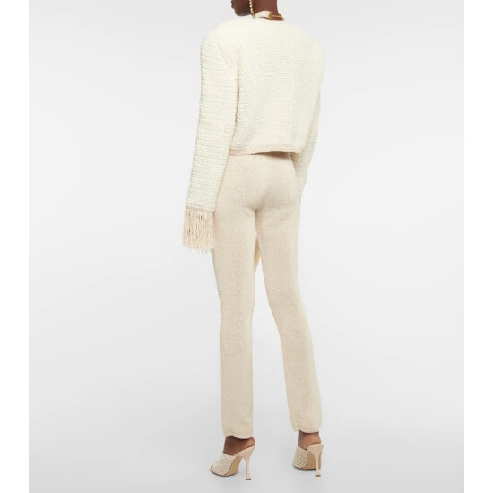 Magda Butrym’s pants are crocheted by hand from cream white cotton-blend yarns. They come in a slim fit with a high waist and slightly flared cuffs.