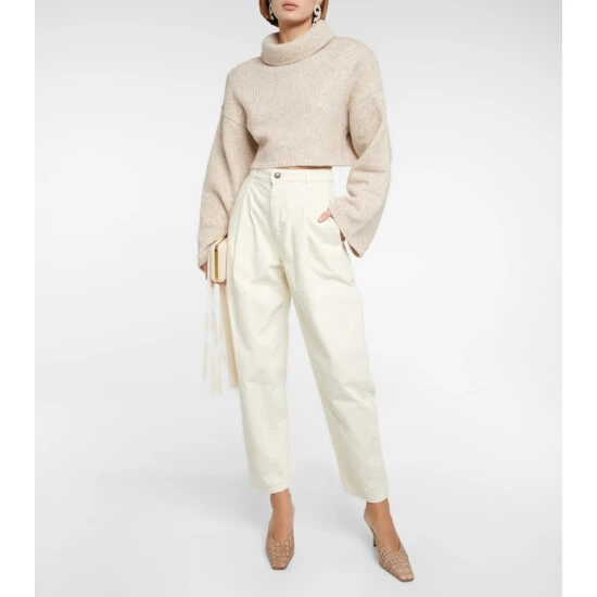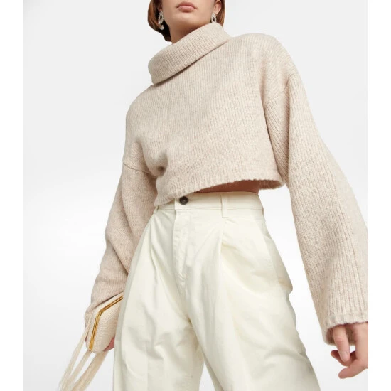 This cropped sweater from Magda Butrym has a structured silhouette due to its padded drop shoulders and bulky turtleneck. Made from an alpaca and wool-blended yarn, this design is lined with pure silk for your comfort.