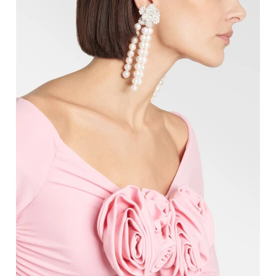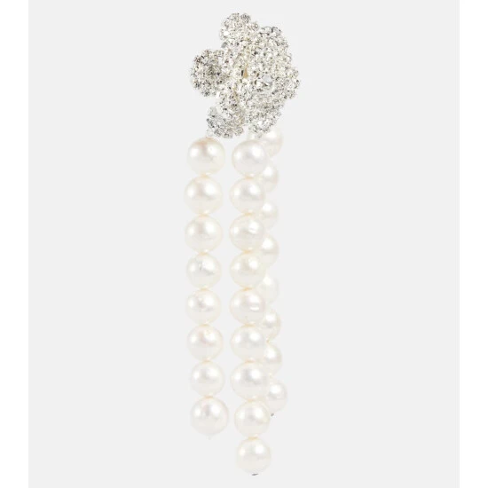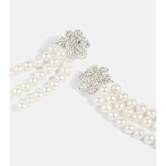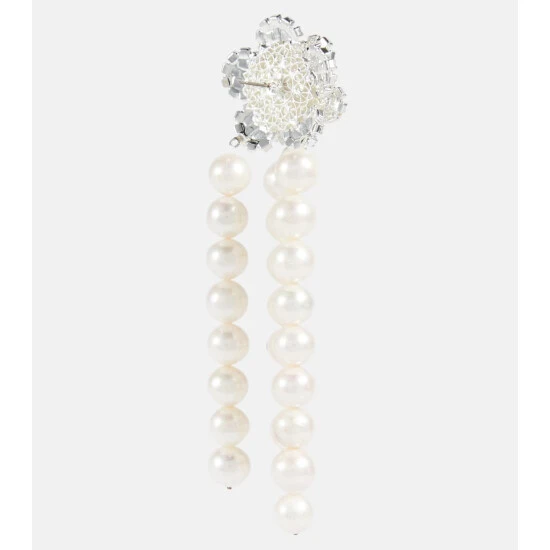 Magda Butrym reimagines vintage jewelry design with exaggerated proportions to create this contemporary style. Featuring floral-shaped crystal bases, these earrings have large freshwater cultured pearl drops that drape to the shoulders.