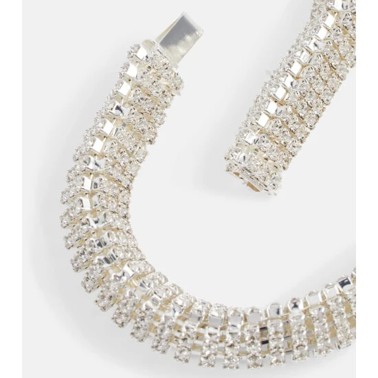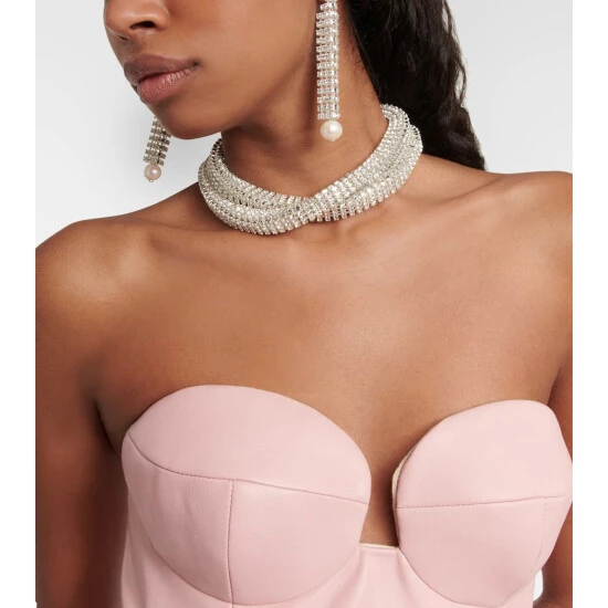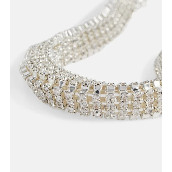 This spotlight-stealing choker necklace highlights Magda Butrym’s imaginative take on contemporary womenswear. Presented with rows of cubic crystal embellishments, this dimensional necklace has a rounded construction, wraps the neck, and secures with a clasp fastening.