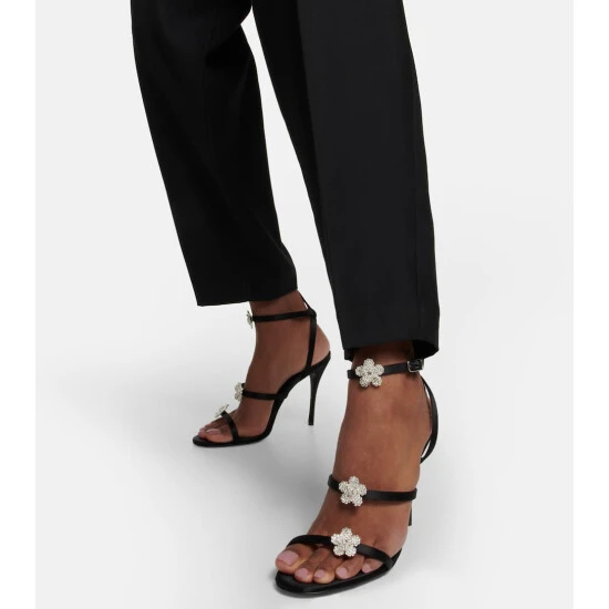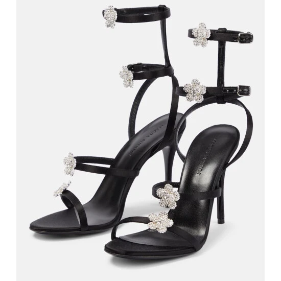 Magda Butrym creates a theatrical collection of contemporary pieces that will bring life to your closet. Made from satin, the multi-strap silhouette of these heeled sandals is enlivened with crystal-embellished flower adornments.