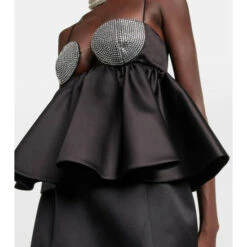 Amp up the allure for your party ensembles with this babydoll top from Magda Butrym. Crafted from a silk blend, the style features crystal-embellished bustier cups that give way to an elegant ruffled peplum.