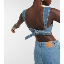 This bra top from Magda Butrym features a self-tie back and is made from pure denim cotton for a stiff fit. Pair yours with the label’s tapered jeans for a complete denim look.