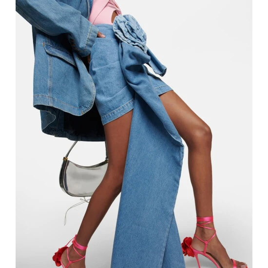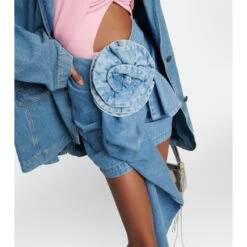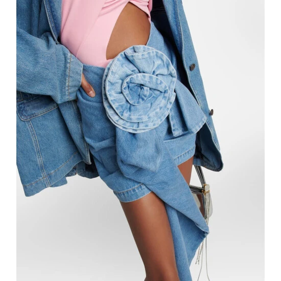 This miniskirt from Magda Butrym is made from denim and features the iconic signature 3D rose brooch with a cascading long sash for a striking finish.