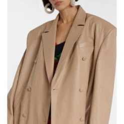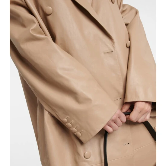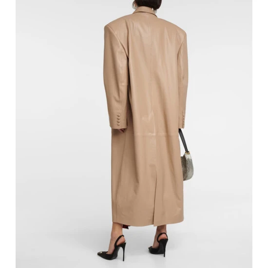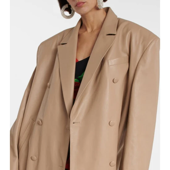 A masculine piece is turned feminine with this coat from Magda Butrym. This piece is made entirely from leather and is designed to have a boxy silhouette.
