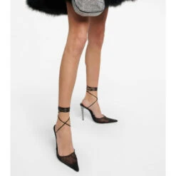These pointed-toe pumps from Magda Butrym feature silk mesh uppers and slender leather straps that wrap around the ankles. The 110mm stiletto heels are punctuated with dainty Swarovski® crystals for a dazzling finishing touch.