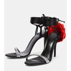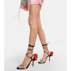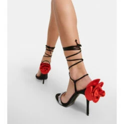 Discover Magda Butrym’s exciting take on contemporary womenswear with these dynamic sandals. Characterized by silk-satin roses to the heel counters, this style has wrap-around ankle ties and crystal-embellished vamp straps.