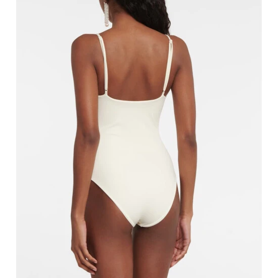 Featuring label-signature floral appliqués at the bust, this swimsuit from Magda Butrym hangs from narrow shoulder straps and has underwired, padded cups. Please note this item offers minimal coverage.