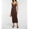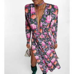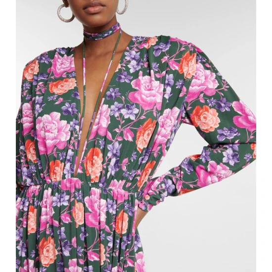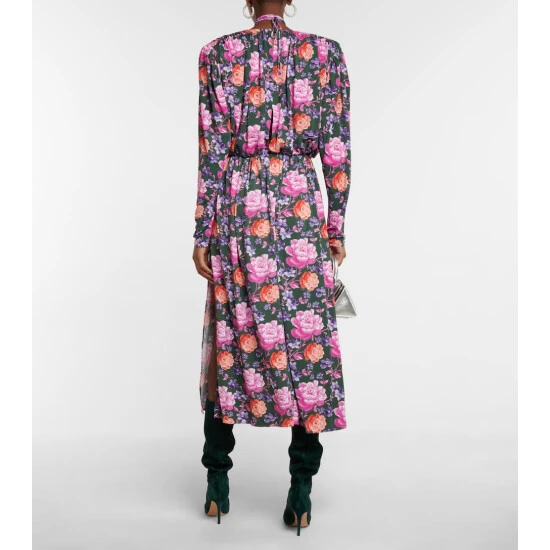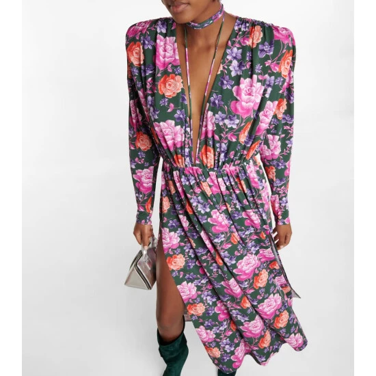 A strong stance begins with this midi dress from Magda Butrym. The floral-printed style has striking detachable shoulder pads, ruched seams, and sleek halterneck ties that accentuate its plunge neckline.