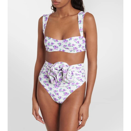 These bikini bottoms from Magda Butrym have a high-rise and high-leg cut. With a vibrant floral print to match, the design boasts the brand’s signature oversized and detachable rose appliqué.