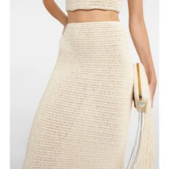 This crochet midi skirt from Magda Butrym is trimmed with long fringes. It has a fitted silhouette and and a high-rise waist.