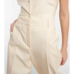 Invest in these classically tailored pants from Magda Butrym. They are made from silk and feature a high-rise with wide-legs that are finished with pressed pleats down the centre.