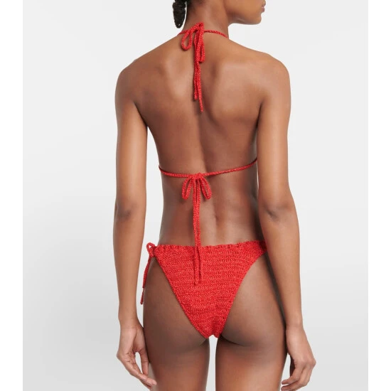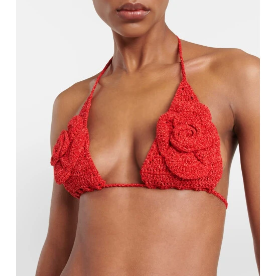 Imagine relaxing seaside in this bikini top from Magda Butrym. This piece features rose details and a tie at both the neck and the back.