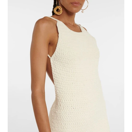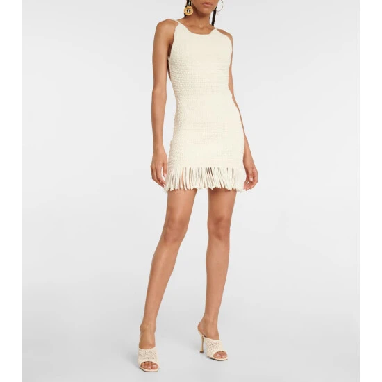 Made from a heavyweight knit fabric, this minidress from Magda Butrym has a u-neck, open back and a fringed hem.