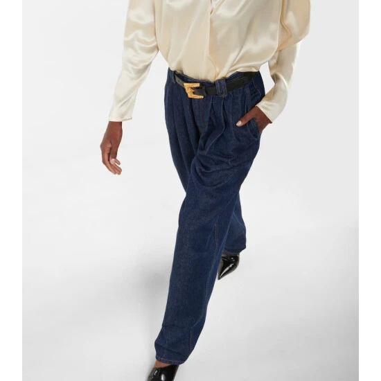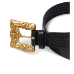 This belt from Magda Butrym is made from grained black leather with an ornate golden buckle. Wear yours to cinch in the designer’s glamorous evening looks.