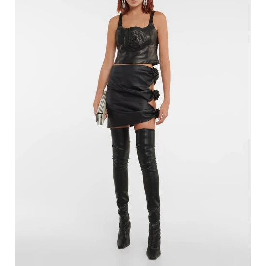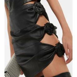 Magda Butrym takes the leather miniskirt to another level with this alluring design. The eye-catching style in black features large cutouts on one side, topping it off with three leather roses.