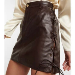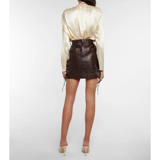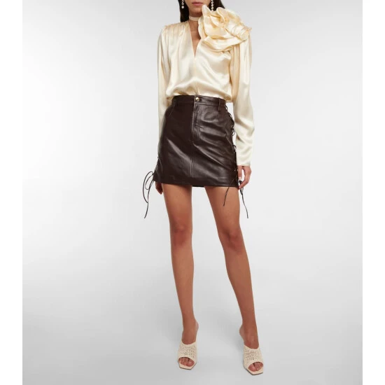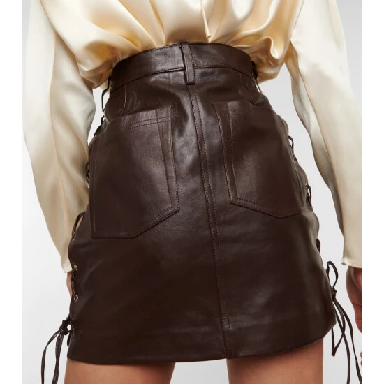 This miniskirt from Magda Butrym is made from smooth lambskin leather in a dark brown shade. Accented with lace-up side seams, it has a high-rise waist and a logo-engraved button.