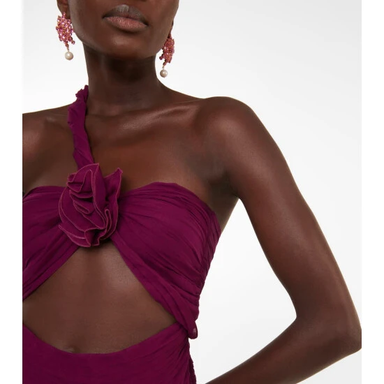 Embrace Magda Butrym’s striking designs with this gently pleated silk minidress. It has a twisted one-shoulder strap and gathered bust, topped with a signature rosette to accentuate the cutout midriff.