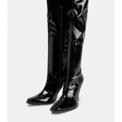 Meet your newest statement shoes, presented to you by Magda Butrym. Set on stiletto heels, these shoes are crafted from glossy patent leather.