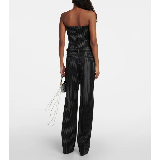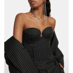 This bustier from Magda Butrym is made from a pinstriped wool suiting fabrication. It has rounded cups and a corsetry-inspired hook and eyelet fastening.