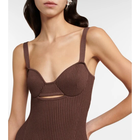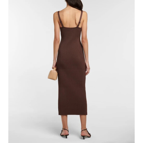 This ribbed midi dress from Magda Butrym is shaped to a slim-fitting silhouette, and fitted with comfortable straps and a cutout detail below the cup detailing.