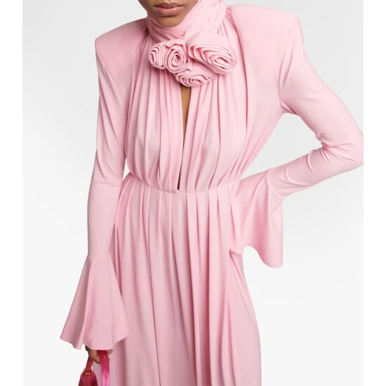 This ‘70s-inspired maxi dress from Magda Butrym will turn heads at your next gala. Made from ruched jersey, it has long bell sleeves with a mock neckline and is finished with subtle high-leg slits.
