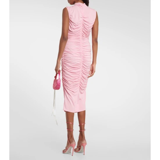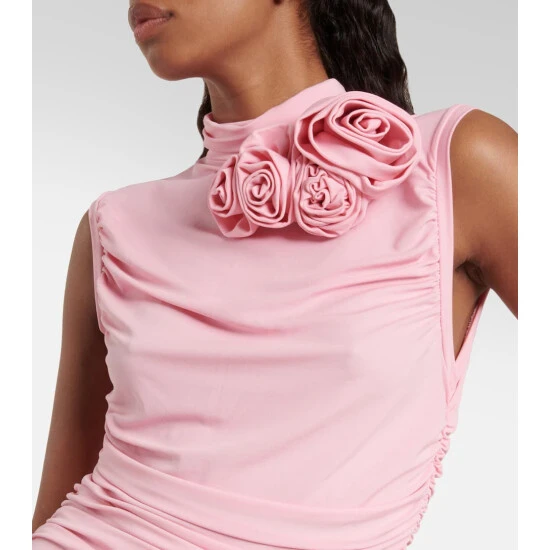 Made from ruched stretch-jersey, this midi dress from Magda Butrym has tonal floral appliqués at its turtleneck.