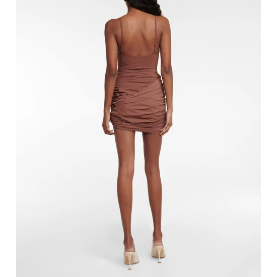 This elegant miniskirt from Magda Butrym showcases drapery and ruching. It’s made from stretch-fused fabric that gathered into an asymmetric knot at one side.