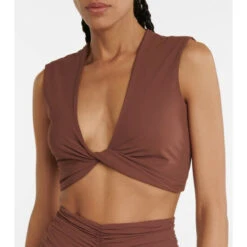Magda Butrym devotees will recognize this bikini top as another of the brand’s sculptural designs with its twist-detailing at the plunging neckline. It’s made in Italy from technical swim fabric for medium coverage.