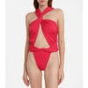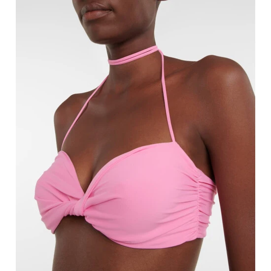 Soak up the sun in style with this bikini top from Magda Butrym. Inspired by 2000s fashion, the powder pink style features a twist in the fabric at the chest and a halterneck strap.