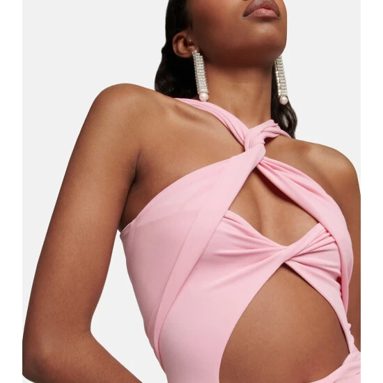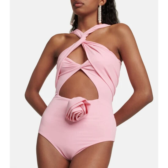 Experiment with the cinematic vision of Magda Butrym in this artful jersey bodysuit. Featuring a detachable gathered rose detail to the front, this form-fitting piece has a halterneck that twists into the layered bodice.