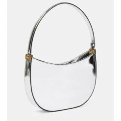 Magda Butrym shows how to do elegant embellishment with the Vesna shoulder bag. It’s made from smooth silver metallic calfskin leather, featuring a moonstone and dangling silver crystal bands on one side.