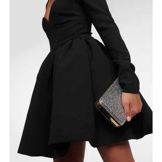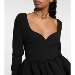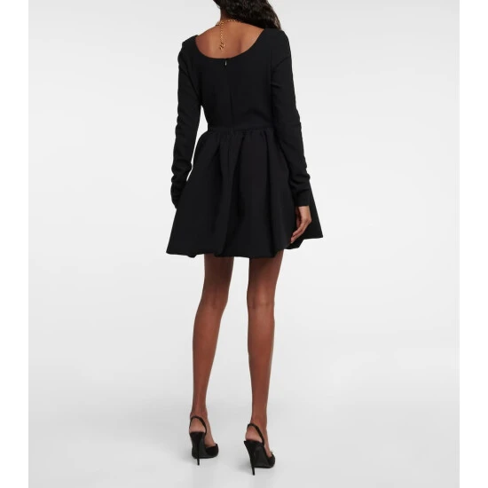 This Magda Butrym minidress is shaped with the brand’s sculpted sweetheart neckline. Cut from a stretchy wool blend knit, it has a dramatically flared bubble skirt.